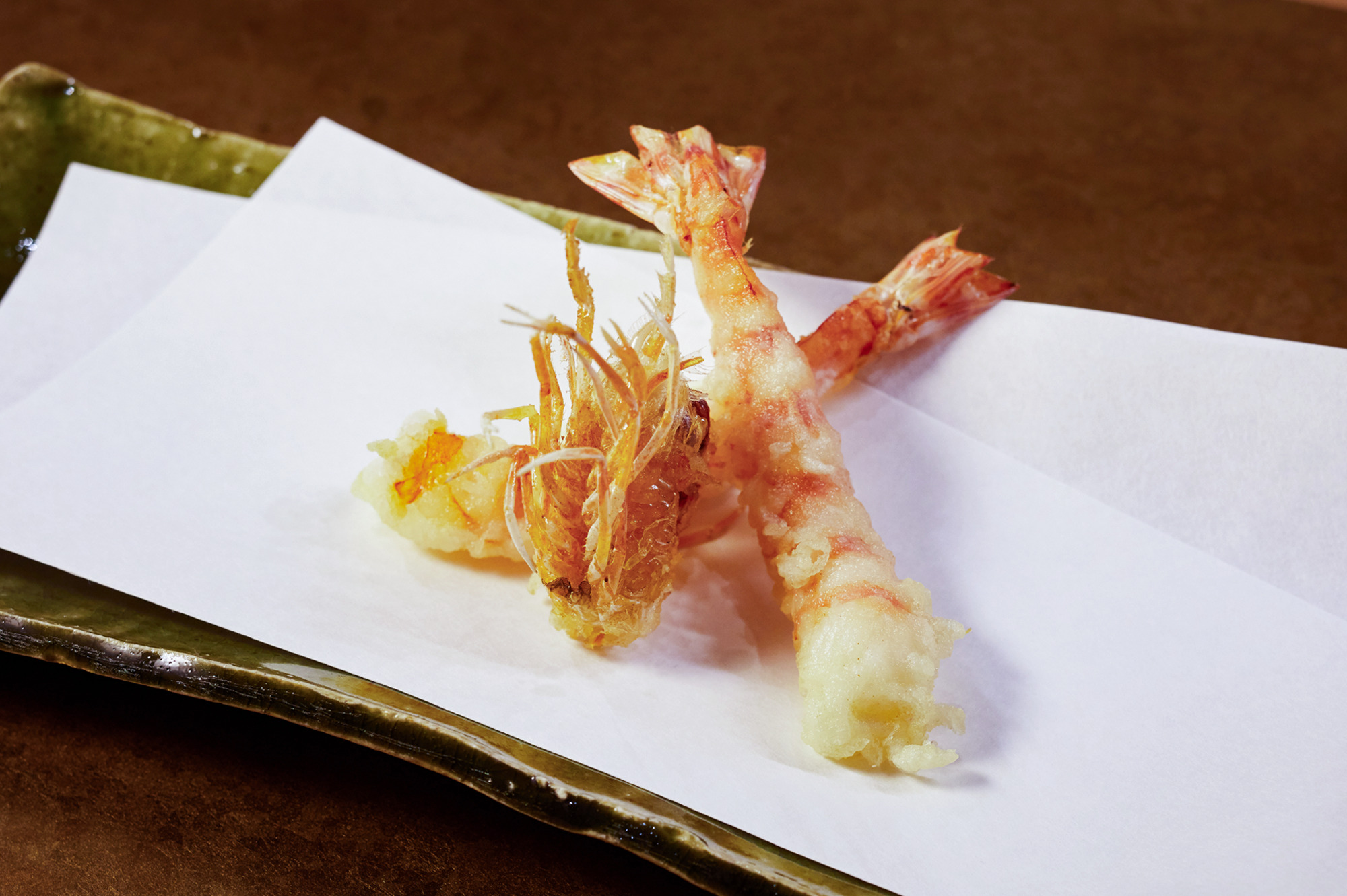 先付け小鉢1品、厳選した天ぷら10種、〆物、